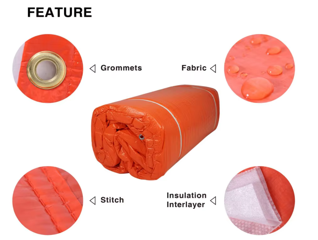 These tarps are used as temporary enclosures to keep jobsites warm during fall and winter month. This 12 x 20 tarps features double stitched hems with aluminum grommets every 3 feet allowing you to secure the tarp around the enclosure and keep the cold out. The 4mm closed cell foam core enables you to maintain warm temperatures, while protecting your workforce from the elements.